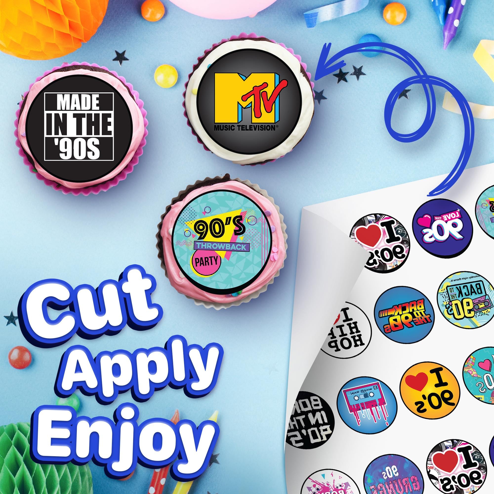 30x sugar Paper 90 Retro Edible Cupcake Topper