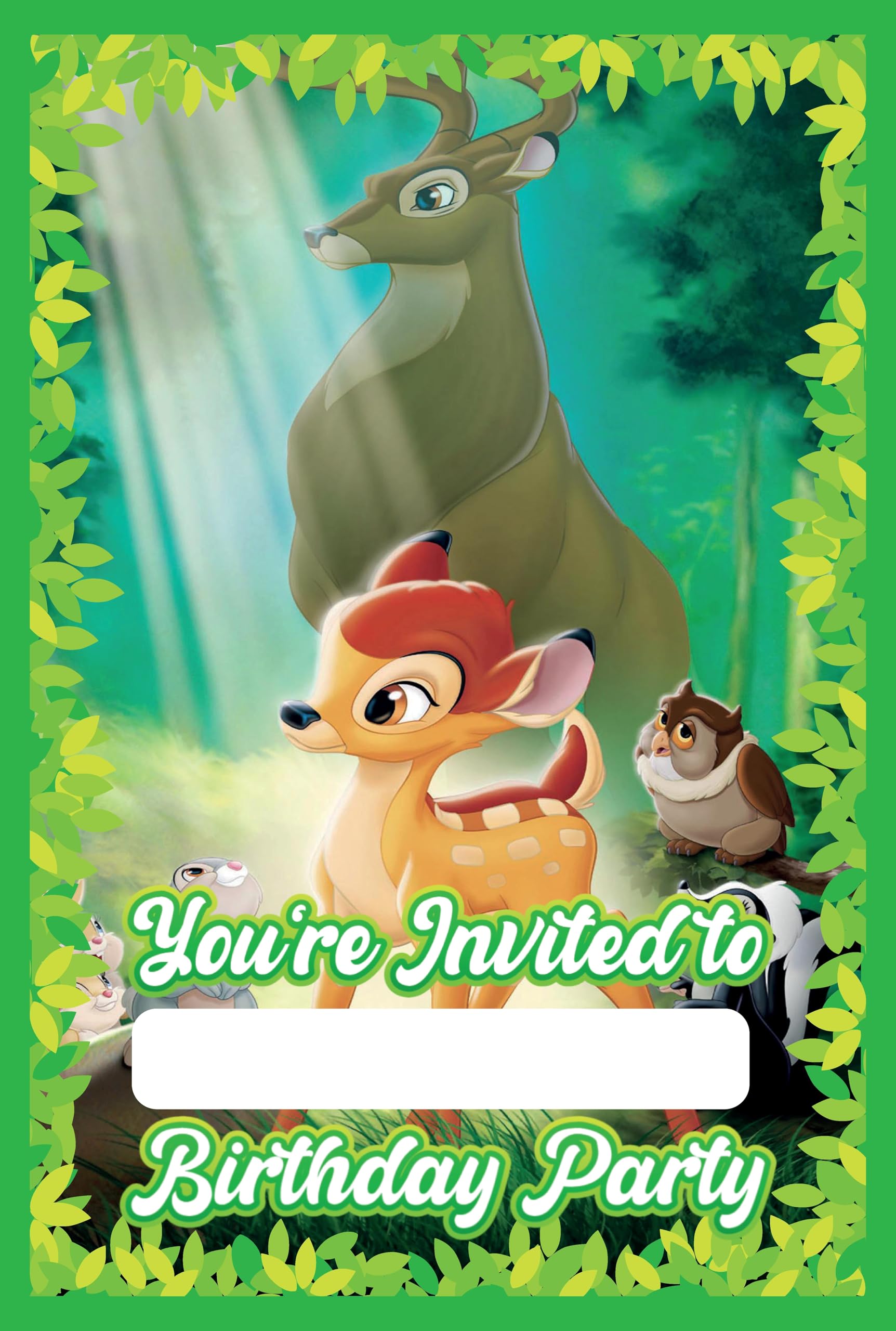 Set of 20 Bambi Birthday Invitation Cards & Envelopes