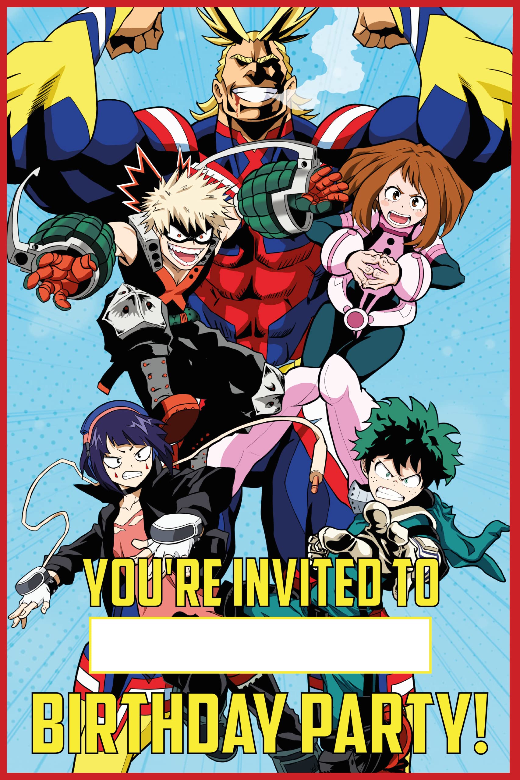 Set of 20 My Hero Academy Birthday Invitation Cards & Envelopes